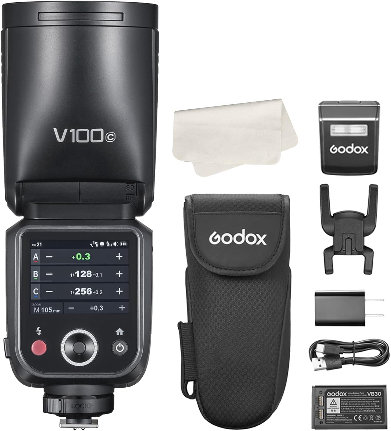 Godox V100C pantalla táctil cámara flash Speedlite para Canon,flash desmontable Sub, USB-C batería de carga, 2.4G X inalámbrico HSS TTL flash para Canon R5 R6 R6II R7 R8 RP R50 M50 90D 6D 7D 5DMarkIII