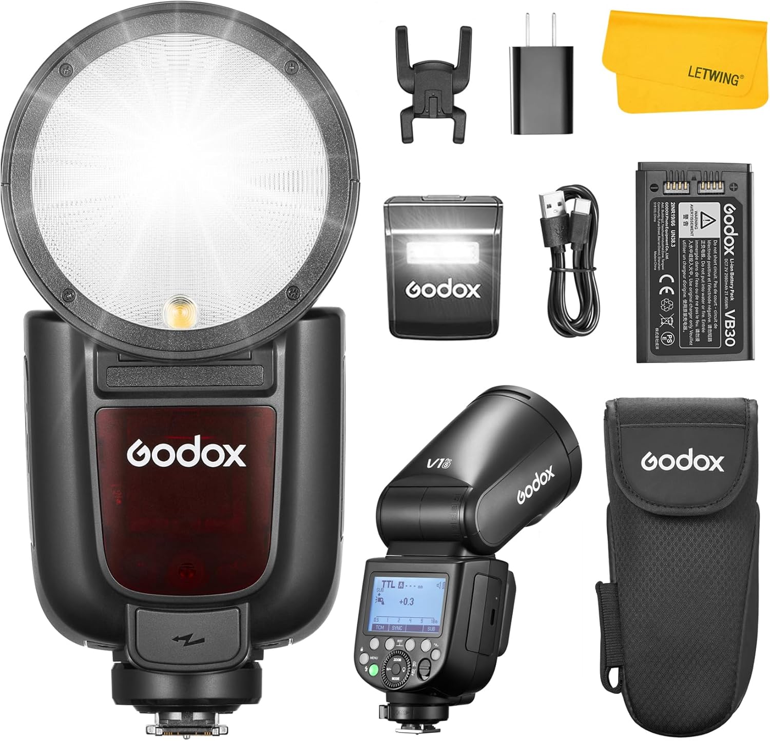 GODOX V1ProS Flash inalámbrico Speedlite de 2,4 G para cámara, 32 Canales, Modo M/TTL, 1/8000 s HSS, Conector de alimentación y subflash Desmontable + 24 geles de Flash para cámaras Sony