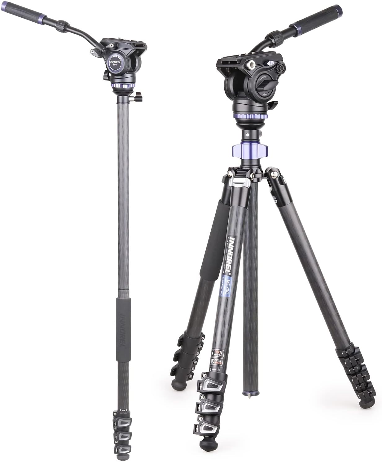 INNOREL MT70C Kit de trípode de Video Profesional de Fibra de Carbono de 10 Capas, con nivelador de Media Bola y Cabeza fluida, Convertible a monopie para DSLR, cámara, Video, videocámara