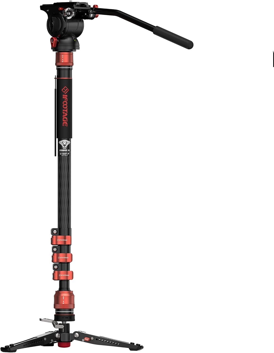 IFOOTAGE Cobra 3 C180F-P+K5S - Monopié de Vídeo, Monopié de Vídeo Profesional con Base de Trípode, Cabezal Fluido de Vídeo, Cabezal Giratorio de Aluminio para Cámaras Réflex y Videocámaras