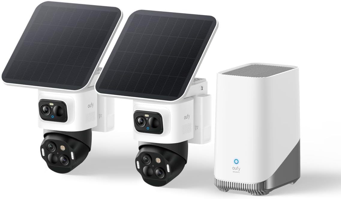 eufy Security S4 Camara vigilancia WiFi Exterior Solar, Bullet‑PTZ de 3Lentes, 4KUHD, Seguimiento 360° múltiple y automático, Zoom híbrido8×, visión Nocturna en Color, 16TB Almacenamiento Local
