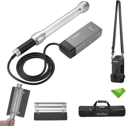 Godox AD-S200 Stick Flash Head para AD200 AD200Pro, 200Ws Speedlight Head CCT 5800K+200K, diseño de Tubo de luz de 360°, monolight con Barndoor y Bolsa de Transporte CB57 para fotografía de Moda
