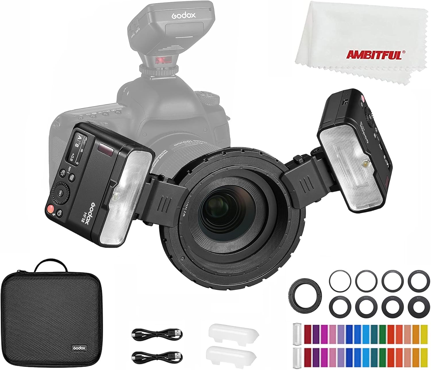 Godox MF12 MF12-K2 Flash Macro de 12 W, Control inalámbrico de 2.4G, Modo TTL/M, batería de Litio incorporada de 3.7V / 6.29W como Flash Compatible con Nikon, Sony, Canon, Fuji, Olympus y Panasonic