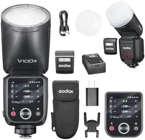GODOX V100N Flash V100-N 100w Cabeza Redonda Pantallas Táctiles Destello para Nikon,2.4G Lnalámbrico con Global Shutter Speedlite Sync 1/80000s,Batería de Litio Incorporada