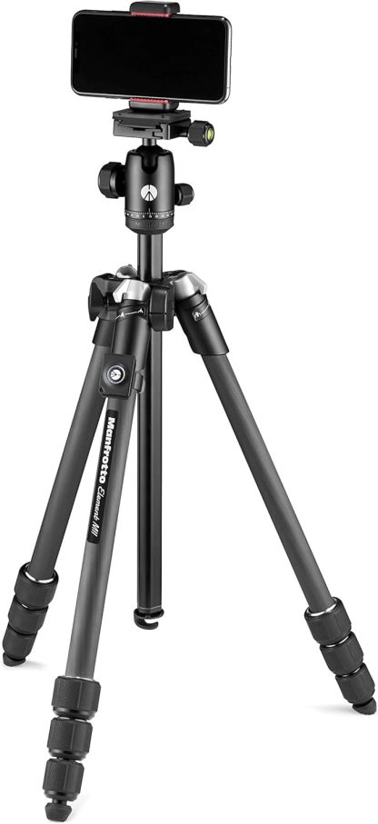 Manfrotto Element MII - Trípode de Viaje de Carbono con Cabezal Esférico y Bluetooth para Smartphone y Cámaras Compactas, CSC, DSLR, Accesorios de Fotografía, Creación de Contenidos, Vlogs