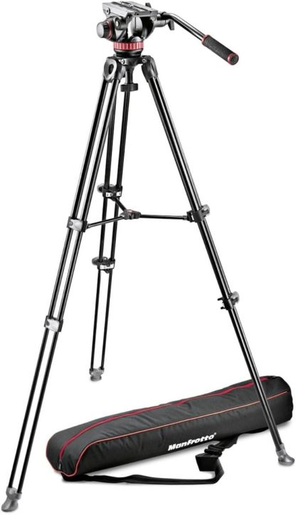 Manfrotto MVK502AM-1 – Sistema Profesional de trípode de vídeo Fluido de Aluminio con Patas telescópicas Dobles, semiesfera de 75 mm – Compatible con cámaras HDSLR – Incluye Bolsa de Transporte