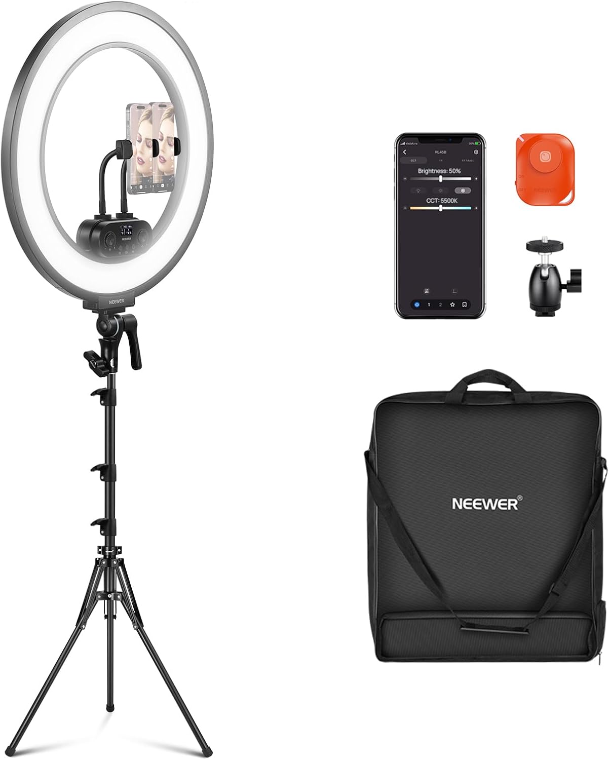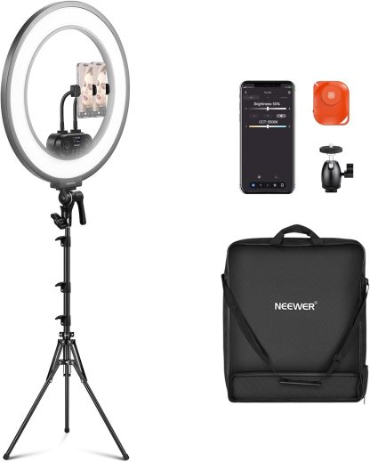NEEWER 18 Inch Kit Aro de Luz con Iluminación de Borde 45W 3300lux 2900K-7000K 12 Escenas con App 2.4G PC Mac Control Mando a Distancia Magnético Desmontable Bolsa de Soporte para TikTok Stream,RL45B