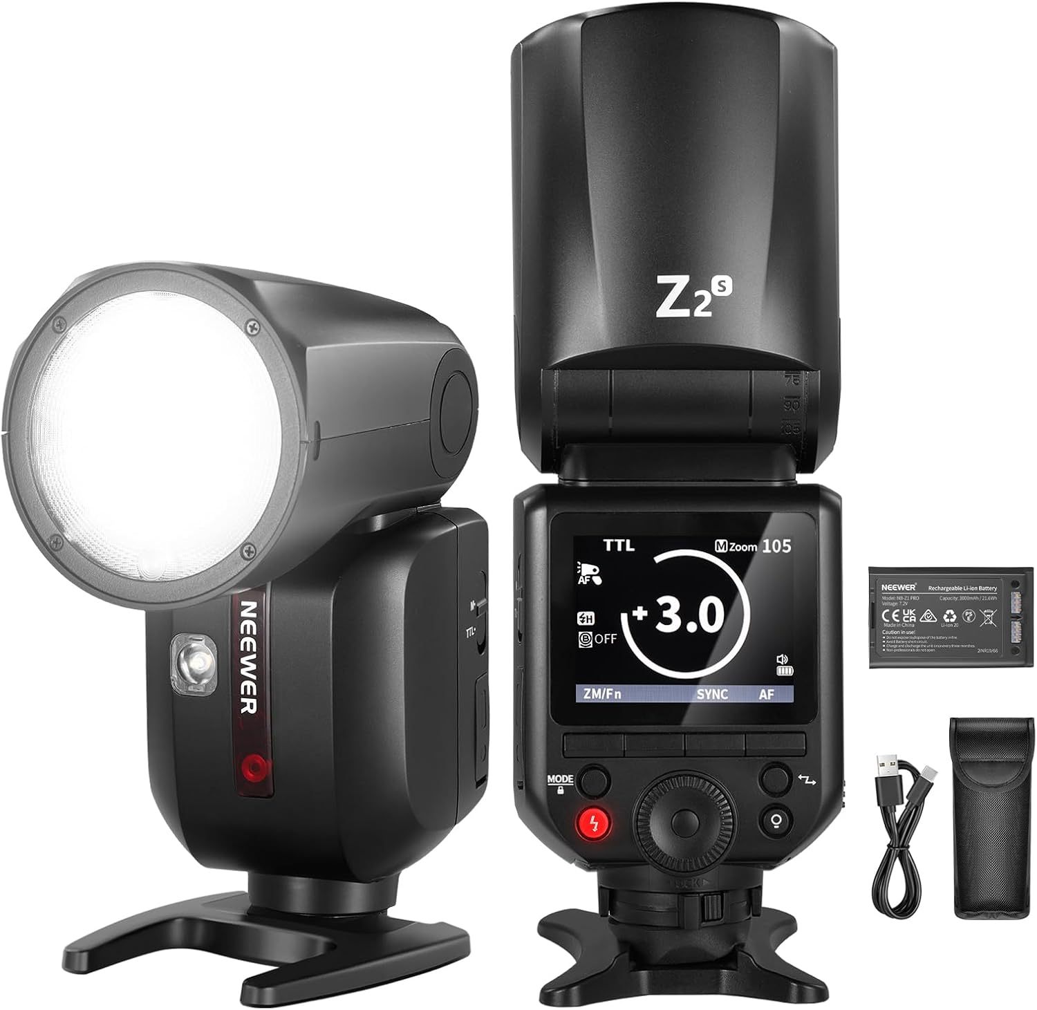 NEEWER Z2-S 2.4G TTL Flash Speedlite Cabeza Redonda Compatible con Sony, Flash HSS 76Ws 1/8000s con Mejorada UI, 2 Lámpara Modelar, Interruptor TCM rápido TTL/M, 7,2V/3000mAh Batería, 600 Flash Power