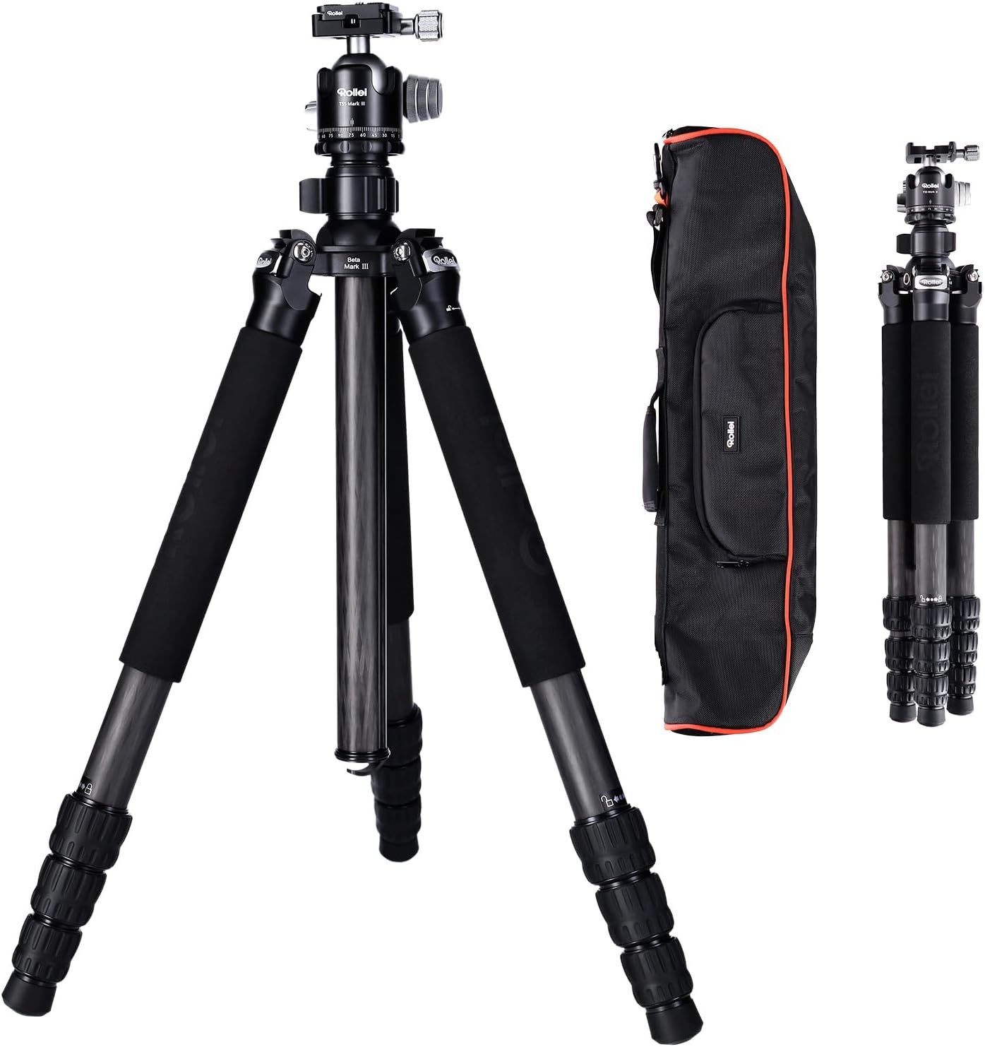 Rollei Rock Solid Beta Mark III, 178,5cm Tripode Fibra de Carbono Trípode Cámara Negro con Capacidad de Carga de 24kg Camera Tripod Flexible con Función de Monopié para Fotografía Profesional
